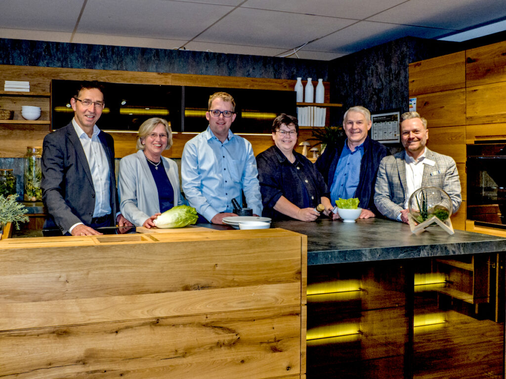 Mit dem richtigen Rezept für den Stadtteil: Der frischgewählte Vorstand von aktiv für Osterholz in einer Küche von Opti Wohnwelt, v.l.: Helmuth Gabler, Ingrid Kirschenlohr, Jörn Krauskopf, Annette Kemp, Robert Schütz, Frank Trompeter. Es fehlt Hans-Peter Jakst.